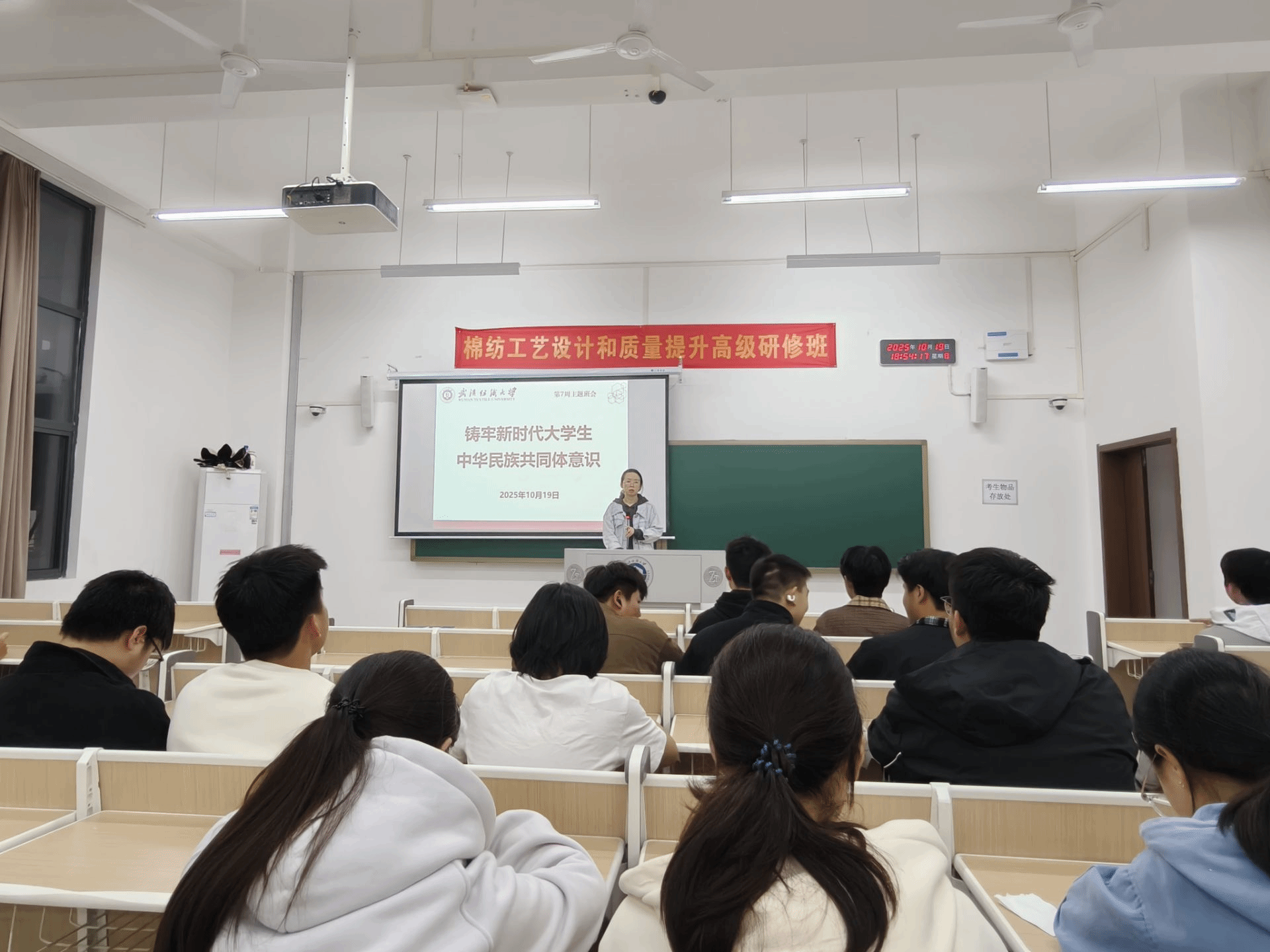 班会伊始,辅导员、班主任老师带领同学们学习了“中华民族共同体意识”的基本概念与历史渊源,并聚焦当前国内外形势与大学生肩负的历史使命,指出在全球化、信息化背景下,在大学生中铸牢中华民族共同体意识对于防范化解风险、凝聚青年力量具有特殊重要意义。老师们强调,大学生作为国家未来建设的生力军,要自觉增强对伟大祖国、中华民族、中华文化、中国共产党和中国特色社会主义的认同,通过理论与实践相结合、积极参与社会实践服务、网络空间引领等把个人成长融入民族团结和祖国发展的大局中,以实际行动维护民族团结,贡献青春力量。