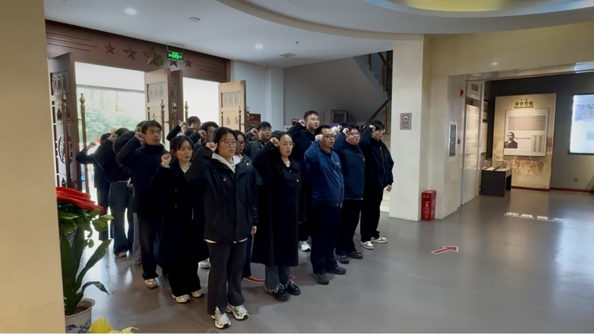 随后,走进江夏区革命烈士纪念馆,一幅幅泛黄的历史照片、一件件珍贵的革命文物、一段段翔实的文字记载,生动再现了江夏地区波澜壮阔的革命斗争历程。大家驻足凝视,认真聆听讲解。从土地革命到抗日战争,从解放战争到和平建设,无数革命先烈为了国家和人民的利益前赴后继、英勇牺牲的事迹,深深震撼了在场每一个人。在纪念馆一楼,大家郑重地重温入党誓词。