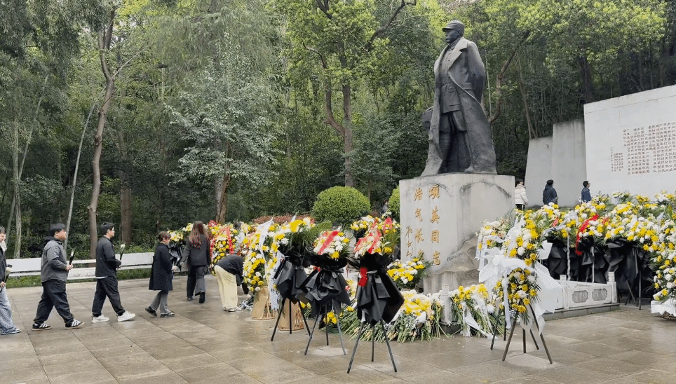 在熊廷弼公园项英铜像前,大家深切缅怀项英同志,感恩先烈为民族独立、人民解放事业作出的巨大牺牲与无私奉献。现场庄重肃穆,全体人员胸前佩戴党员徽章,手中捧着菊花,列队整齐,神情肃穆而专注,向无产阶级革命家、党和红军早期领导人项英同志的铜像行注目礼,默哀致敬并献花,表达了对革命先辈的深切怀念和崇高敬意。