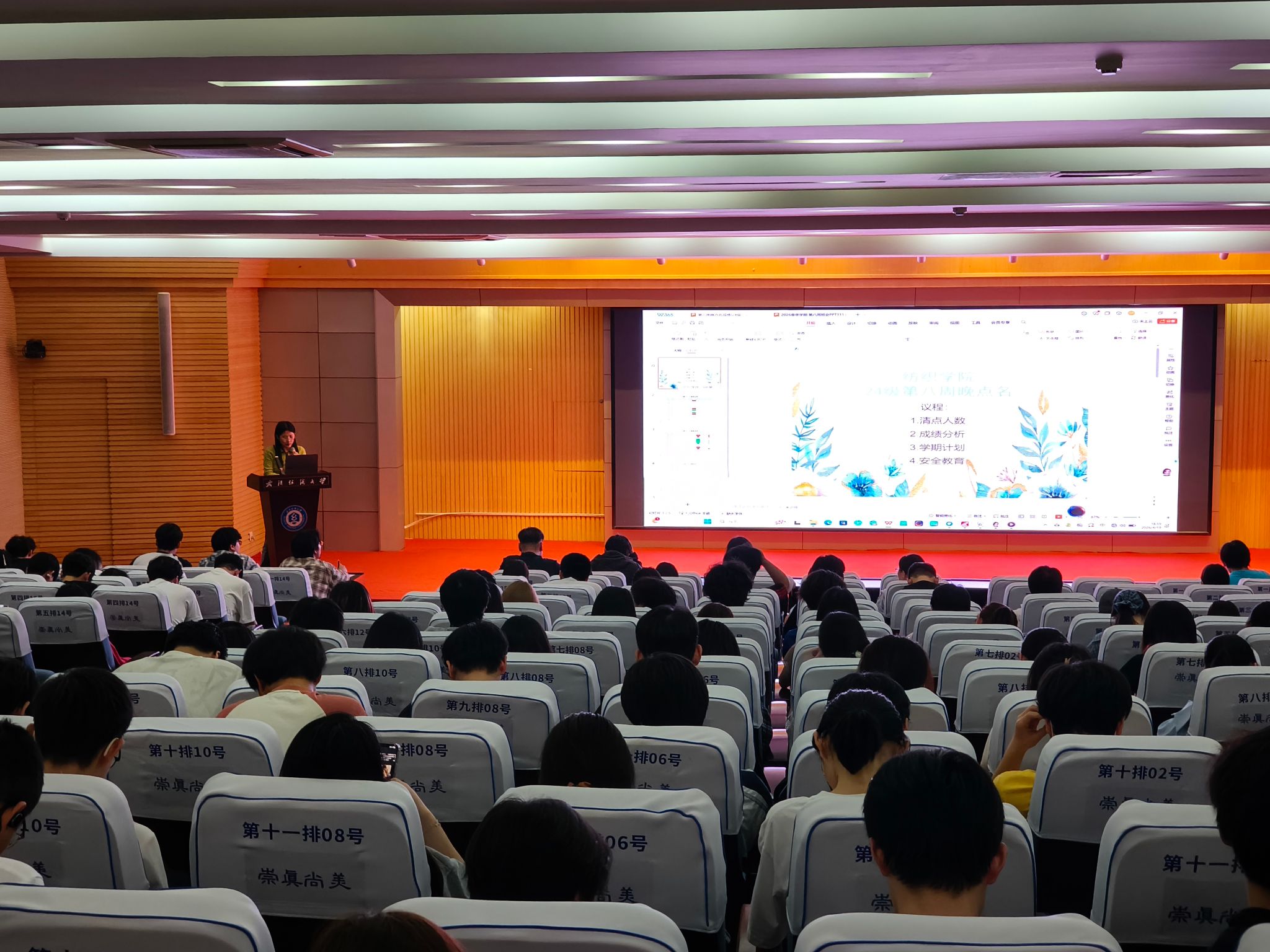 班会伊始,辅导员聚焦同学们日常学习生活中的重点安全领域,围绕消防安全、财产安全、电信诈骗、心理健康、实验室安全、实习安全、五一出行安全等方面展开细致讲解与全面宣传,用贴近校园生活的真实案例与实用知识,让安全意识入脑入心。