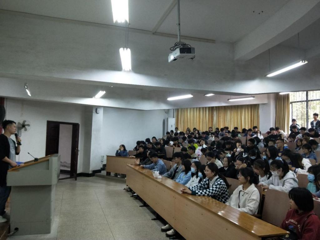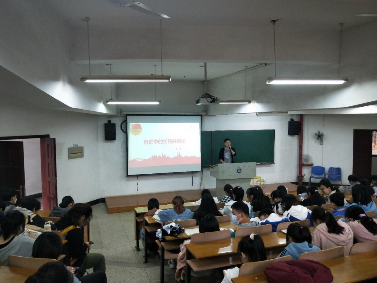 在7栋教学楼T101教室开展以“奋进中的纺院共青团”为主题的团课,本次团课由李亮老师主持,21级全体新生参与此次团课。